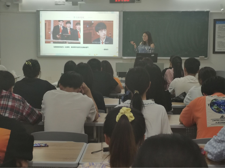 在班会中,部分同学为大家分享了大学近两年来的成长与收获,通过自身真实的大学经历给同学们勇气和信心,坚定执着追梦。龙新腾同学以“静心思,躬身行”为主题,用幽默的语言分享了自己的学习经验,鼓励大家能够为了未来不断进取;夏依阳同学以《令人心动的offer》这一节目引入自己对于法学专业的学习契机,分享了自己劳逸结合、循序渐进的学习方法,并回答同学们问题;赵敏秀同学用一段辩论赛视频的总结陈词“趁着年轻,我偏要勉强”鼓舞大家,鼓励作为青年的我们应当做“加法”,为自己“加入”更多元的尝试,更坚定的行动,更广阔的胸怀;唐红霞同学提出了自己对于学习、就业的疑惑,经过老师们的指导做出了自己的选择,鼓励同学们根据自身情况、及时调整,做出适合自己的选择;金小婷同学建议同学们每学期开学前做一个学期规划;曾慧虹同学谈到日常学习工作注重细节,细节决定成败;高微同学提到做好情绪管理等。