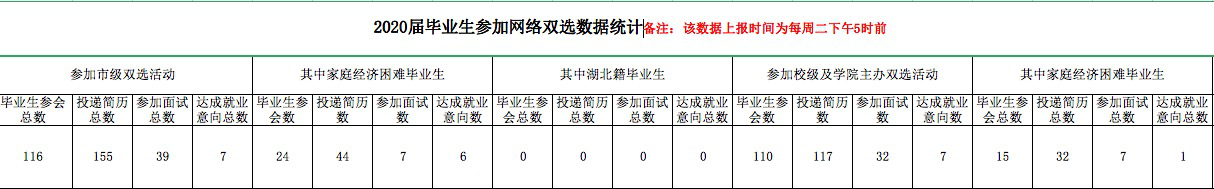2.加强宣传动员,监督落实就业成效。随着网络招聘会的陆续开展,积极动员、组织和指导公司毕业生参加教育部24365校园招聘服务活动、“就在山城 圆梦青春”重庆市大型网络双选活动、“美加墨世界杯官网2020年毕业生网络视频双选会”及其他兄弟院校举办的春季网络招聘活动。要求员工积极参加各类网络双选会,做到3月8日前网上宣传全覆盖,员工3月12日前网上注册全覆盖,通过每周汇总简历截图及参加双选会数据情况,督促员工实现网络就业。3月18日,公司157名未就业毕业生积极参加本校网络双选会。