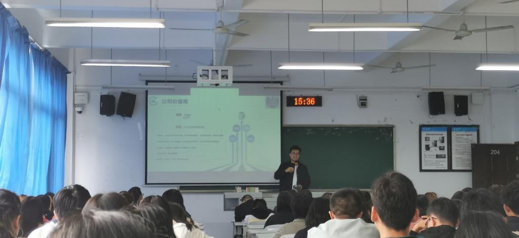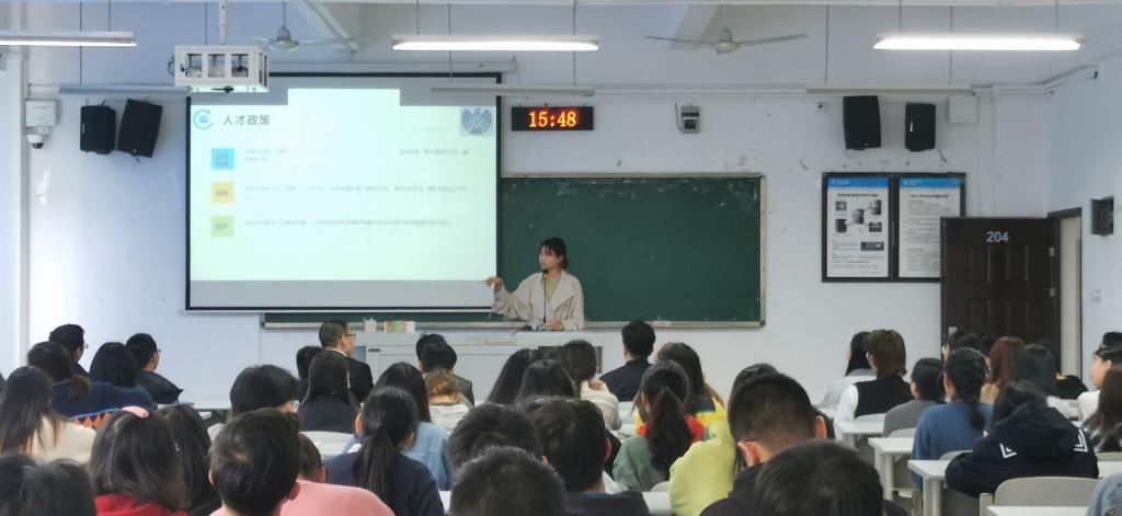 会上,参与本次招聘会的企业负责人通过PPT展示、面对面交流等方式向同学们介绍了公司情况、发展前景、人员需求、薪资福利等。现场的同学们积极与招聘人员交流,认真填写简历并在现场面试。
