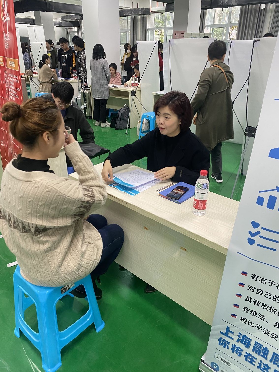 公司对此次招聘会高度重视,前期经过多方联系,共引进10加家用人单位到校招聘。陈卫星经理、黄明靖书记、秦祖伟副经理及毕业班辅导员周老师到场组织员工应聘。本次招聘会为员工提供了许多有针对性的就业岗位和实习机会,招聘现场互动频繁、气氛热烈,同学们身着正装,向心仪的企业投递简历,有序的排队进行面试,主动了解用人单位情况,并与招聘人员就工作时间、招聘岗位、薪资待遇等方面进行面对面交流。