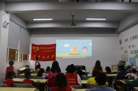 本次活动分为三个环节。首先,王敏同学从傣族的饮食文化、待客之道、服饰文化以及生活习俗四个方面向社区小朋友们展现了傣族的文化魅力,并通过图片多方面展示了傣族文化,同时也让小朋友们对傣族这个少数民族有了更加深刻的了解,感受到了其中的独特文化魅力。