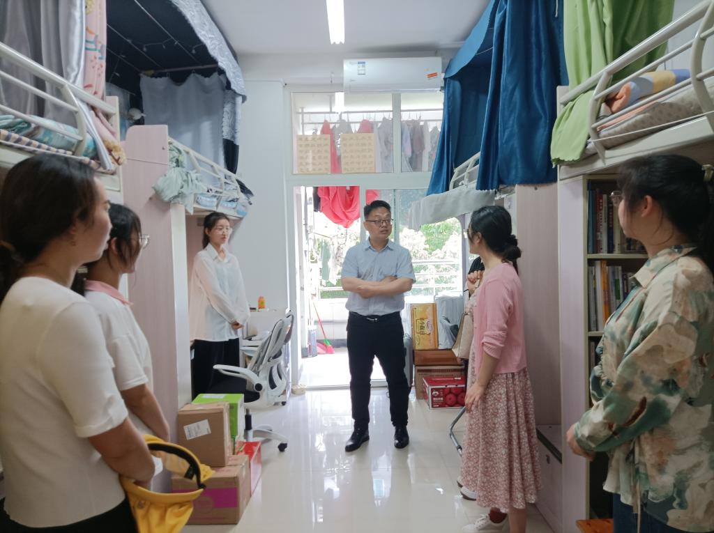 二是对近期存在违纪违规、寝室卫生通报批评寝室进行重点走访。在了解具体情况和被通报原因后,赵书记从生命安全方面对寝室相关管理规定作了再次的提醒和强调,他要求同学们务必重视个人人身安全,严格遵守相关管理规定,切勿以身试法,触碰纪律红线和底线。如有特殊需求,要主动联系辅导员,公司将会努力帮助大家解决相关困难。