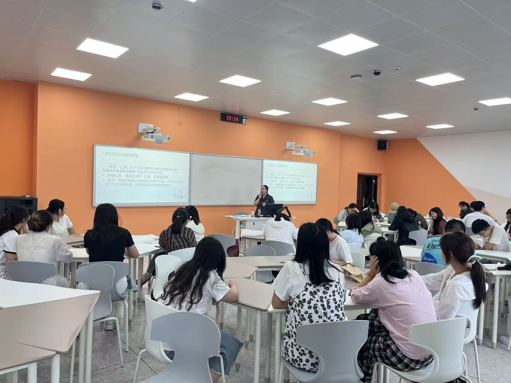 在互动环节,现场气氛活跃,同学们踊跃提问。大家就“司法实践中如何平衡行政效率与程序正义”、“新业态下行政监管面临的挑战”以及“法律条文与具体案件事实如何精准对接”等问题与朱副庭长进行了深入交流。朱副庭长耐心细致的解答,以其独特的实务视角为同学们拨云见日,赢得了阵阵掌声。